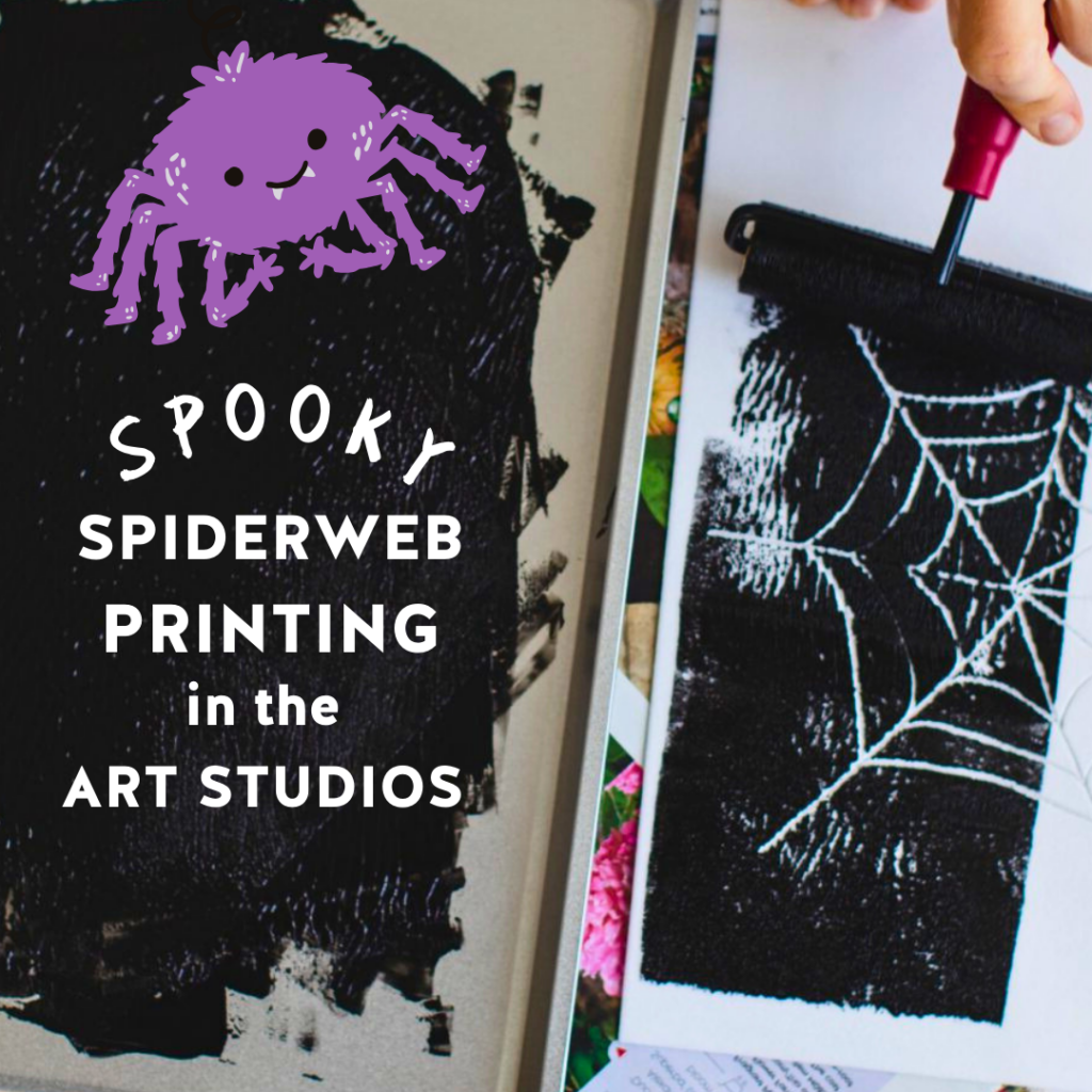 What to expect : Our Art Studios are practicing Fine Motor Skills with Printmaking for Kids – We will use a variety of tools to draw spiderwebs on foam, apply paint, and stamp onto paper to try spooky spiderweb printing!