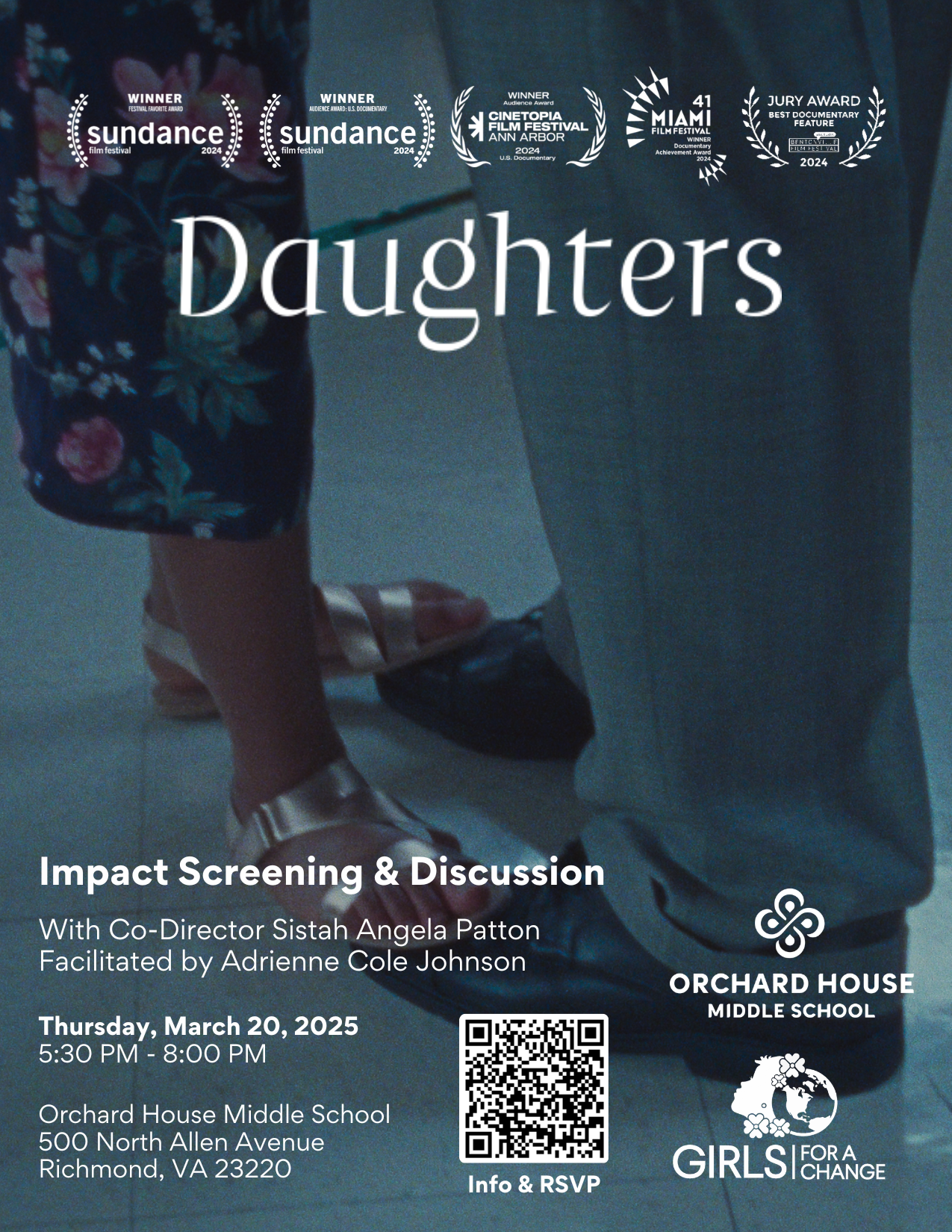 We are honored to welcome Sistah Angela Patton, a visionary leader in the Greater Richmond community and Chief Executive Officer of Girls For A Change, and co-director of the film. Her extraordinary work has earned her numerous accolades, including the prestigious “Champions of Change” award presented by President Obama in 2016.