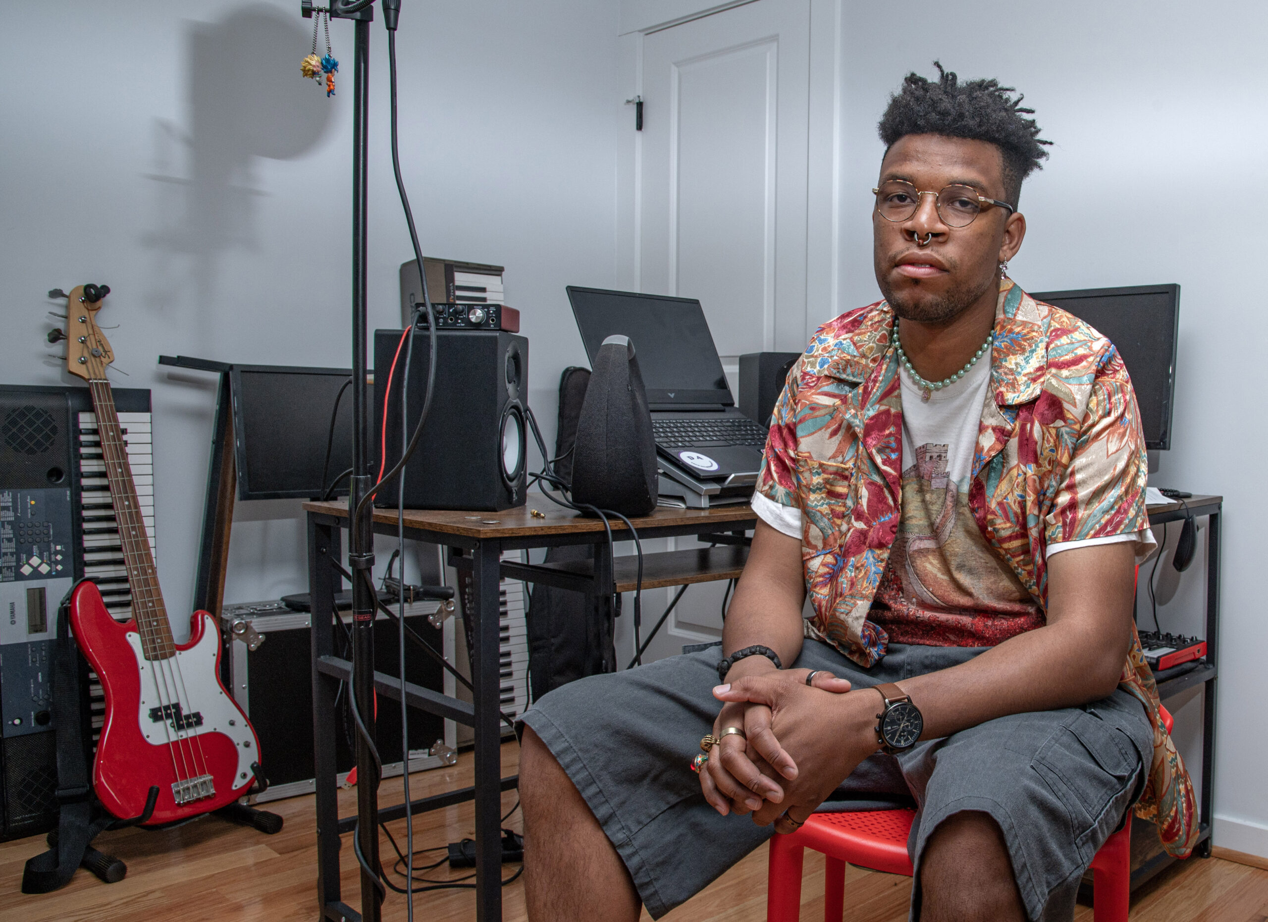 Finally settling on a playlist, he leans back against the wall, a song from New York rapper MIKE’s album “Showbiz!” emanating from the speakers. It’s his day off from working as a mail carrier, a job whose long shifts enable an insatiable musical appetite. “I listen to a ridiculous amount of music,” he chuckles, and during our conversation, I notice the playlist shuffle between a wildly disparate array of genres and artists, from Massive Attack to Linkin Park to SahBabii to Toro Y Moi.