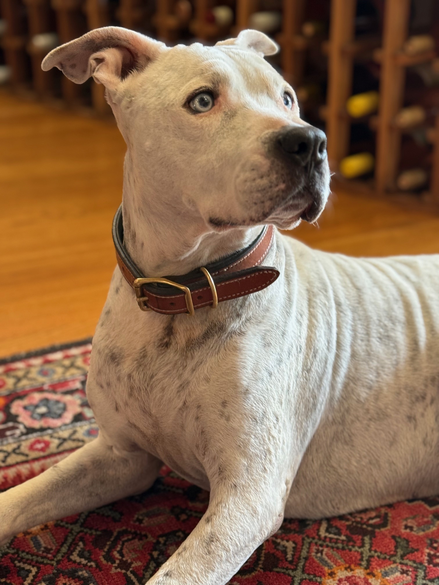 The moment you walk into J. Emerson, you’ll either hear (click clack) or see the sweet white face and sky-blue eyes of Lincoln, the 13-year-old pit mix and shop greeter/head honcho.