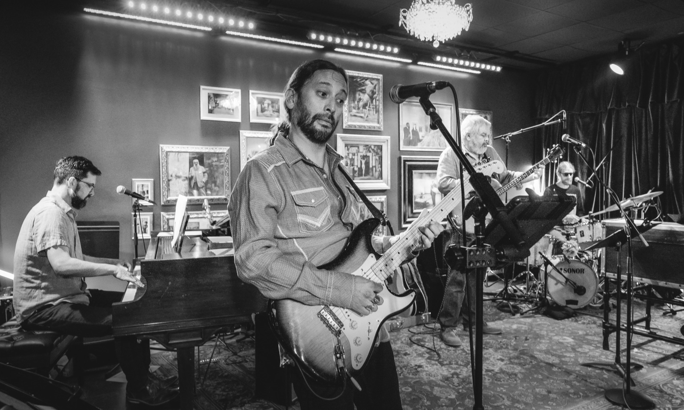 The RVA band — mirroring the Dead’s instrumentation — is based around the veteran rhythm section of the Révéler “Potluck” series leading up to Mardi Gras: pianist Daniel Clarke, bassist Stewart Myers and drummer Dusty Ray Simmons. Brian Jones, long a pillar of the Richmond musical community, is the second drummer. The Potluck lead guitarist, Willie Williams, is also on hand, with Louis Smith on vocals and guitar. Originally planned as a one-day, two show event, it has doubled to four shows over three days. All but the Tuesday night seats are sold out, but there are always a limited number of additional tickets set aside for the lounge area at the door.