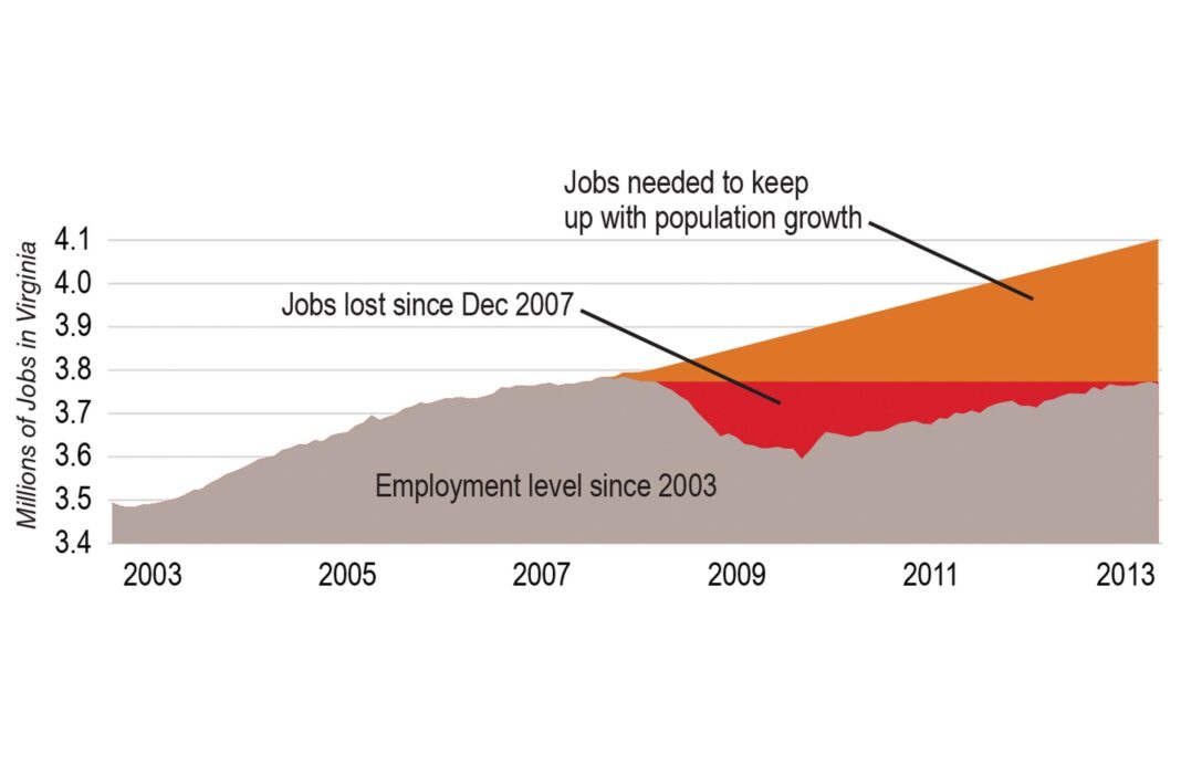 Opinion: "Virginia has not only a worse jobs gap than the country at large, but the state is in a worse position than at the depth of the recession, which ended June 2009."