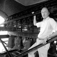 Eight stories above Byrd Park, beneath tons of bronze, a man makes music.