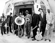 On the march with the Dirty Dozen Brass Band.