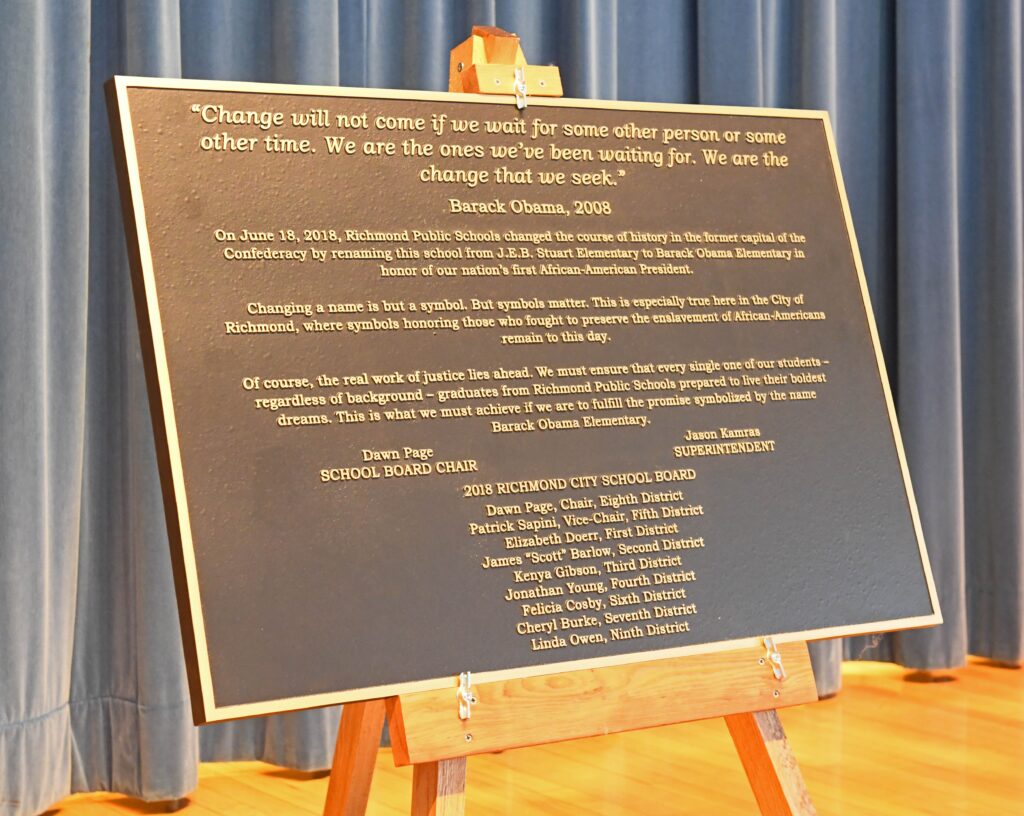 Slideshow February 14, 2020 Barack Obama Elementary Dedication Scott Elmquist The dedication of the Barack Obama Elementary School took place this morning. The school was formerly named after Confederate general J.E.B. Stuart. The Richmond School Board voted to change the name last June. Photos by Scott Elmquist Share FacebookTwitterPinterestWhatsApp TRENDING Food + Drink Playing With Fire Food + Drink Meet Me At The Saloon Books The Man With Two Brains Museums Revolution Revisited WHAT YOU WANT TO KNOW — straight to your inbox * indicates required Email Address *First Name Last Name Our mailing lists: The Scoop | Best things to eat, drink, see, hear, and do this weekend.Sunday With Style | The ultimate cure for those Sunday scaries.The Feed | Dining guides, columns, and news about the city’s restaurant scene.Stills | Roundup of the best photos of the month.Datebook | Best events to fill your calendar this month.