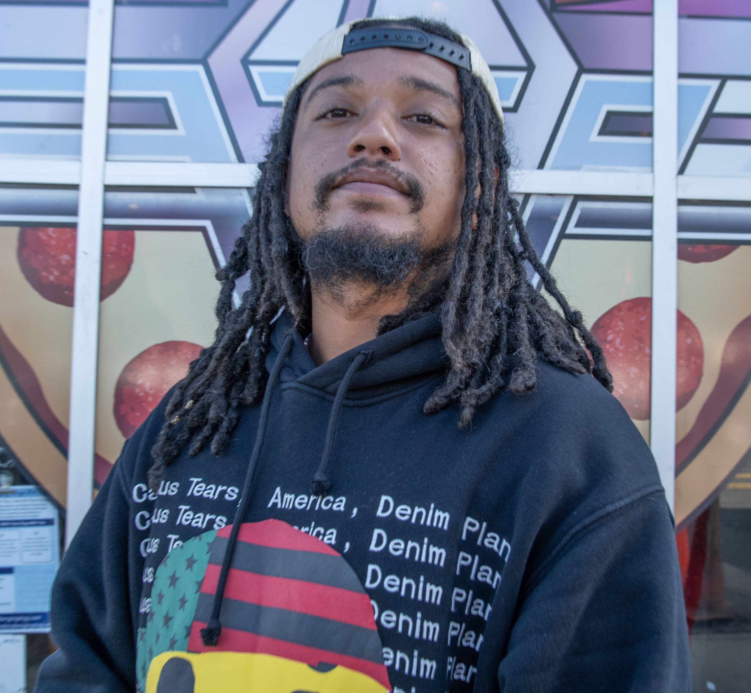 “This is the home base,” CJ the Profit tells me, gesturing to Hot For Pizza’s open front door.