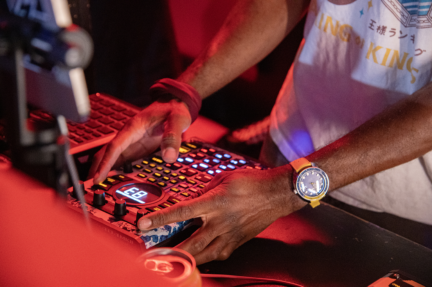 The Club’s seven members, King Kaiju, Glop, Hernbean5150, Tortilla Katour, Swellthy, High Club, and CJ himself, were friends kicking around the same music scenes, converging in various permutations at Hot For Pizza to sip drinks and talk shop. Eventually, they all realized they used the SP-404 in their practice, forming a loose consortium to bounce techniques and new music off of each other.