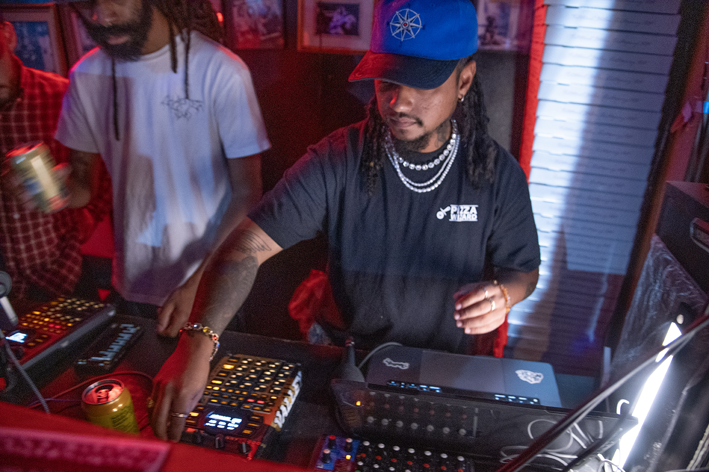 CJ, a rapper, producer, and jazz drummer from Richmond, is here as part of the 80404 Club, a small collective of River City beatmakers and artists whose primary instrument is the Roland SP-404 sampler. Twice a month, the 80404 Club hosts a free beat showcase, and these gigs have been packing out the small drinkery. Tonight is no different. “We picked Hot For Pizza because we’re already here like every day hanging out,” CJ chuckles. “We call it the office. We get off work and put in hours here.”