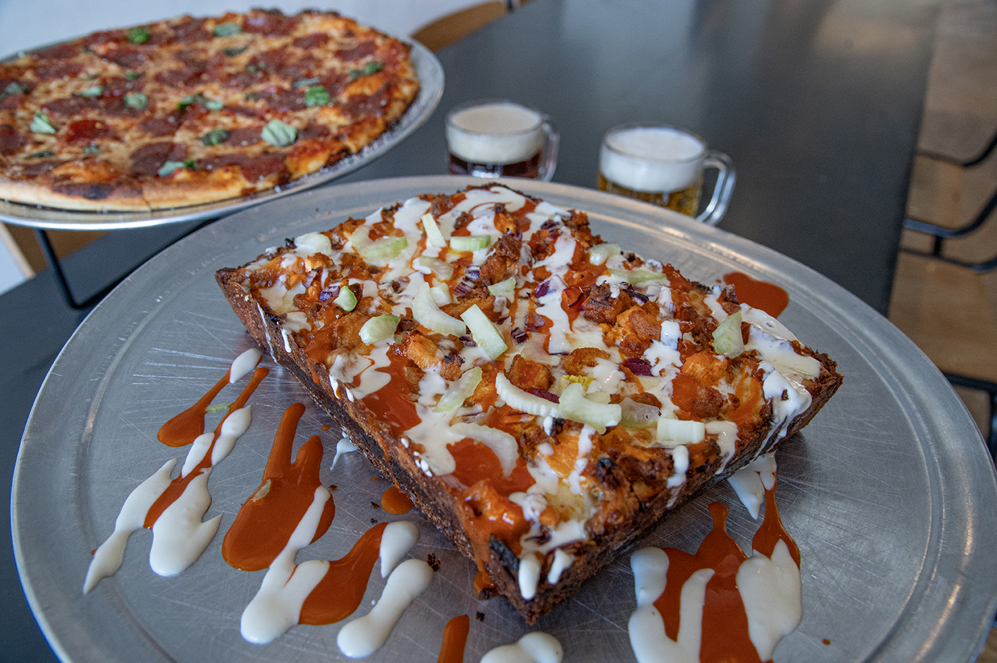 The new menu launched Tuesday, March 11 with its own Instagram as well, @yourstrulypizzarva. The menu is anchored by two types of pizza. First, there’s a thin and crispy bar pie—Bayer says cornmeal is the key to a lovely crunch on this pie that’s designed to pair with ales and other bar snacks. The second is Detroit-style, which has made previous appearances on the Bingo menu, but Bayer has refined the recipe.