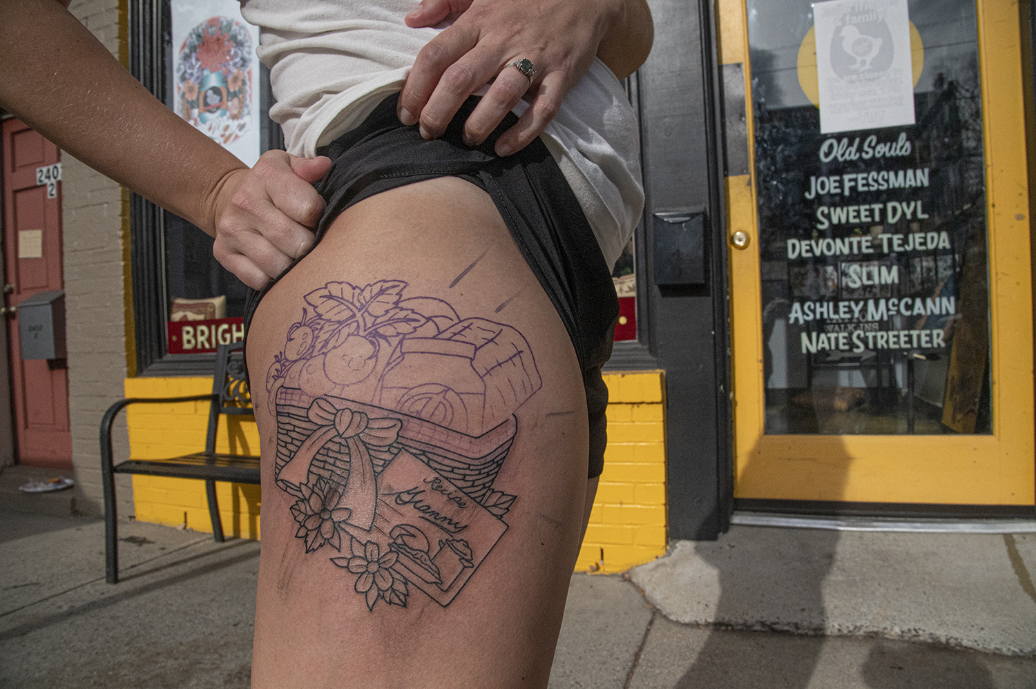 Robinson grew up putting mayonnaise on hot dogs instead of ketchup or mustard, and went so far as to make her own. Haun kept the tradition alive by using mayonnaise as his hot dog topping but he also loved tomato sandwiches, which became the basis for their tattoo design. This is Robinson’s second tattoo. Her first was the Colorado state flower to commemorate Haun’s military service while he was stationed there. “It’s not as bad as having a baby,” she says of the tattoo process. “But like having a baby, [the pain] don’t last forever.”