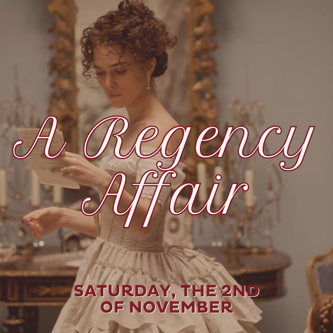 The town is abuzz with news of a most exciting event celebrating Hallow’s Eve on Saturday, the 2nd of November. Celebrate in your regency era gowns, suits, and attire, cheers a refreshing welcome cocktail, and enjoy a delicious dessert spread.