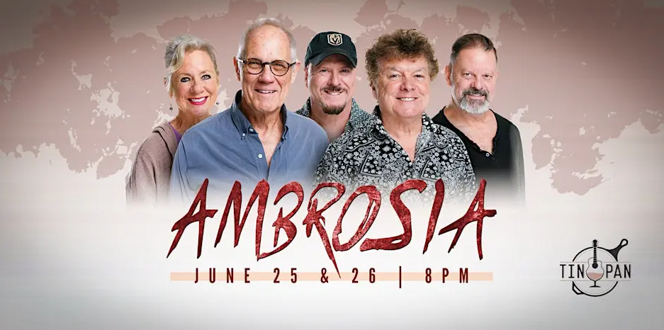 Today the band is more alive and compelling than ever. They are proud of their musically diverse history and embrace their popularity gained through heavy play on “Yacht Rock Stations.” Whether it’s touring alone, out with their comrade bands Orleans, Firefall, Little River Band, or backing their other artist friends Peter Beckett (Voice of Player), John Ford Coley (of England Dan and JFC), Al Stewart, Walter Egan, Elliot Lurie (of Looking Glass) in “a trip down memory lane” packages, Ambrosia has lots to offer. Ambrosia, with THREE of the four original members intact after more than 50 years, 25 years of guitar ace Doug Jackson on electric guitar and backing vocals, Mary Harris contributing amazing keyboards and vocals, and the return of co-lead vocalist/all instruments covered Shem von Schroeck (Toto, Christopher Cross, Kenny Loggins) the band continues to thrill life-long fans and create new ones along the way.