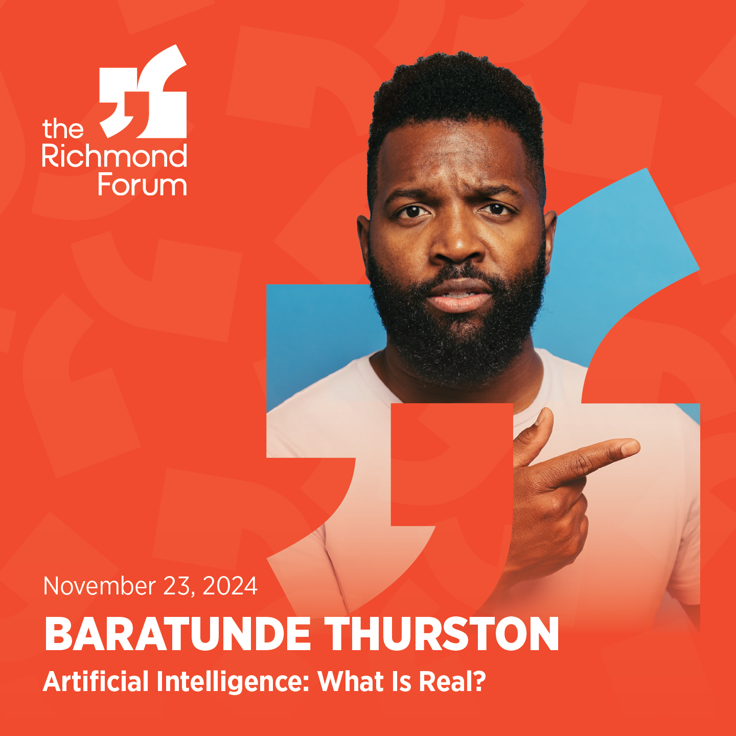 The future is coming fast. New technologies like artificial intelligence offer inspiration and the promise of removing burdensome tasks from our daily lives. However, their rapid and seemingly unchecked development prompts concerns about consent, control, and compensation, and industrialized creativity threatens to flood the zone with nonsensical content. As we barrel toward a more digitally integrated future, what will it mean to be human? Writer, producer, and comedian Baratunde Thurston will explore whether our obsession with these technologies has us wandering too far from our essential human nature and challenge us to shape a future where we balance commercial and humanitarian interests.