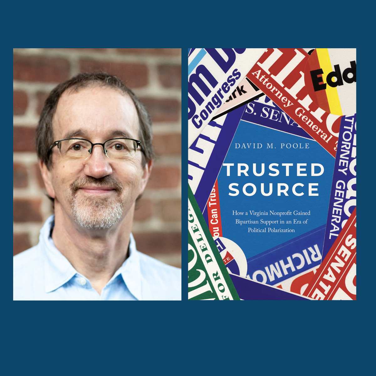 Join us for a talk with journalist David Poole, founder of the Virginia Public Access Project, who will discuss his new book, “Trusted Source: How a Virginia Nonprofit Gained Bipartisan Support in an Era of Political Polarization.”