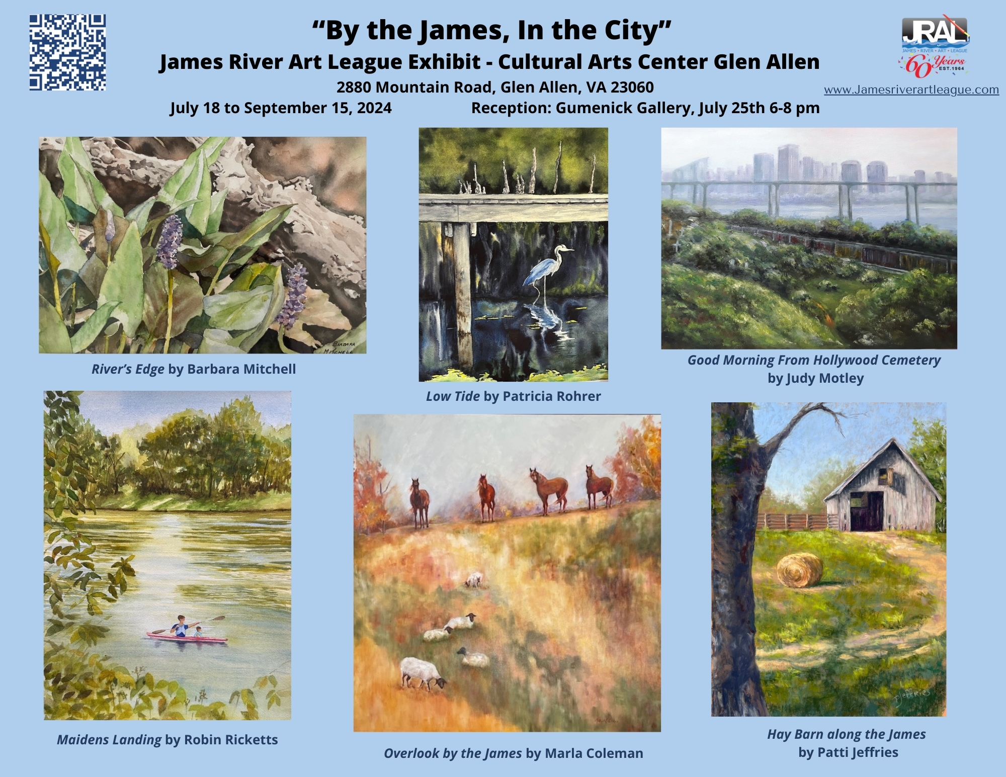 This exhibit is an interpretation by James River Art League artists of the many different faces of the James River and surrounding areas.