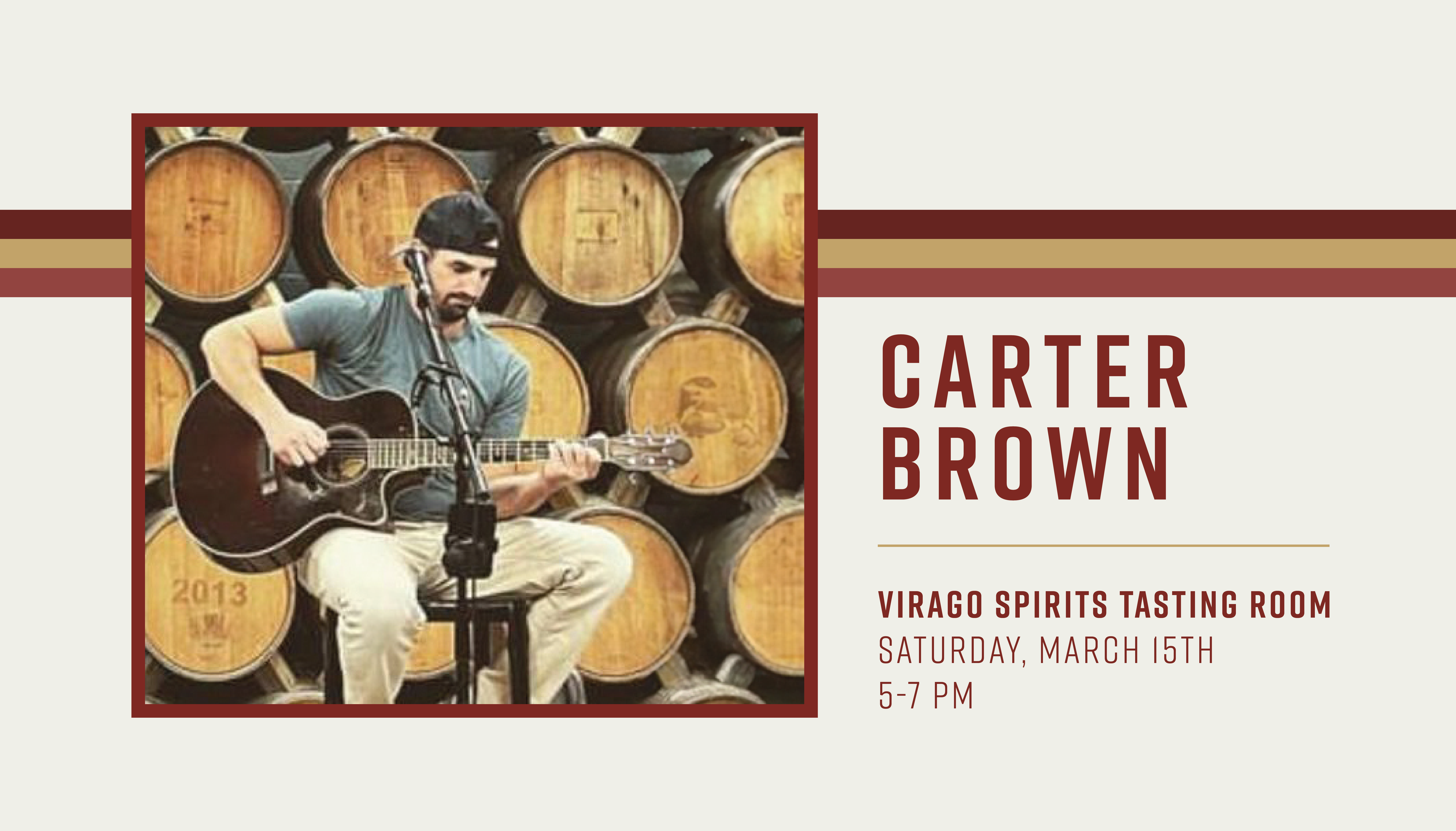 We can’t wait to welcome Carter Brown back to the tasting room. His sound spans various genres and pays homage to artists such as Marcus King, John Mayer, and Dave Matthews. Join us for an evening of great music and delicious cocktails!