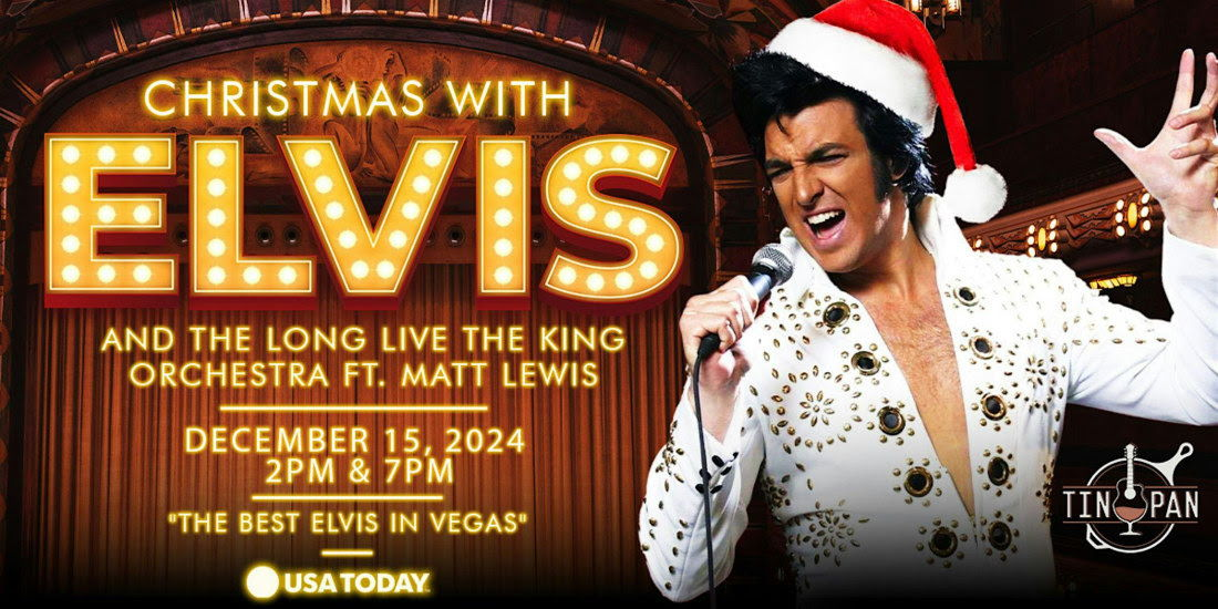 Christmas with Elvis stars Matt Lewis, “Best Elvis in Las Vegas” by USA Today, and features Big Ray and the Kool Kats as The Long Live the King Orchestra. Elvis loved Christmas and so do we. And of course, you’ll also hear many of Elvis’ biggest hits from his early years, the black leather 1968 Comeback Special, and of course the Vegas years. Complete with the ALL LIVE band and singers and of course the iconic costume changes.