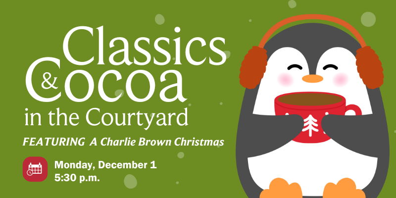 Kids and families: Join us in the Mounument Avenue Courtyard for this annual tradition. We’ll be roasting marshmallows over the fire, enjoying a warm beverage, and watching A Charlie Brown Christmas. It’s fun for everyone!