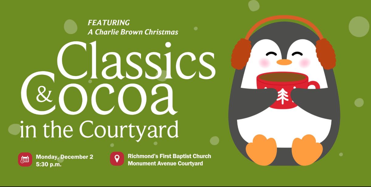 Join us for hot cocoa, cider, marshmallows over a fire, and a beautiful display of lights while we watch the beloved holiday movie, A Charlie Brown Christmas. The event is fun for the whole family!