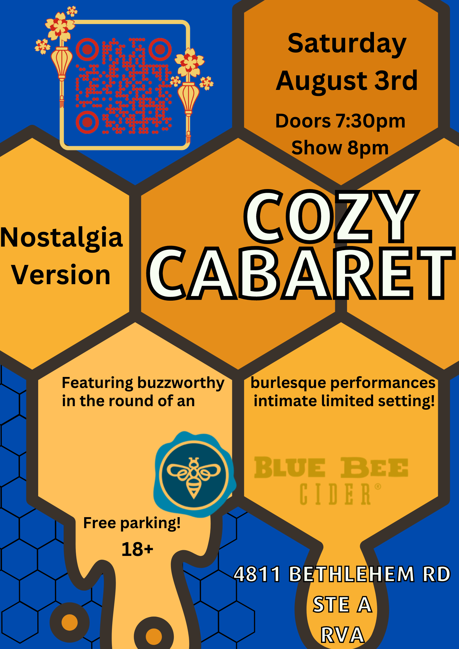 Break out your best nostalgic attire and join us for a night of fun, nostalgia, and timeless entertainment. Cozy Cabaret at Blue Bee Cider is the perfect way to embrace the magic in an intimate and welcoming setting. We look forward to seeing you there!