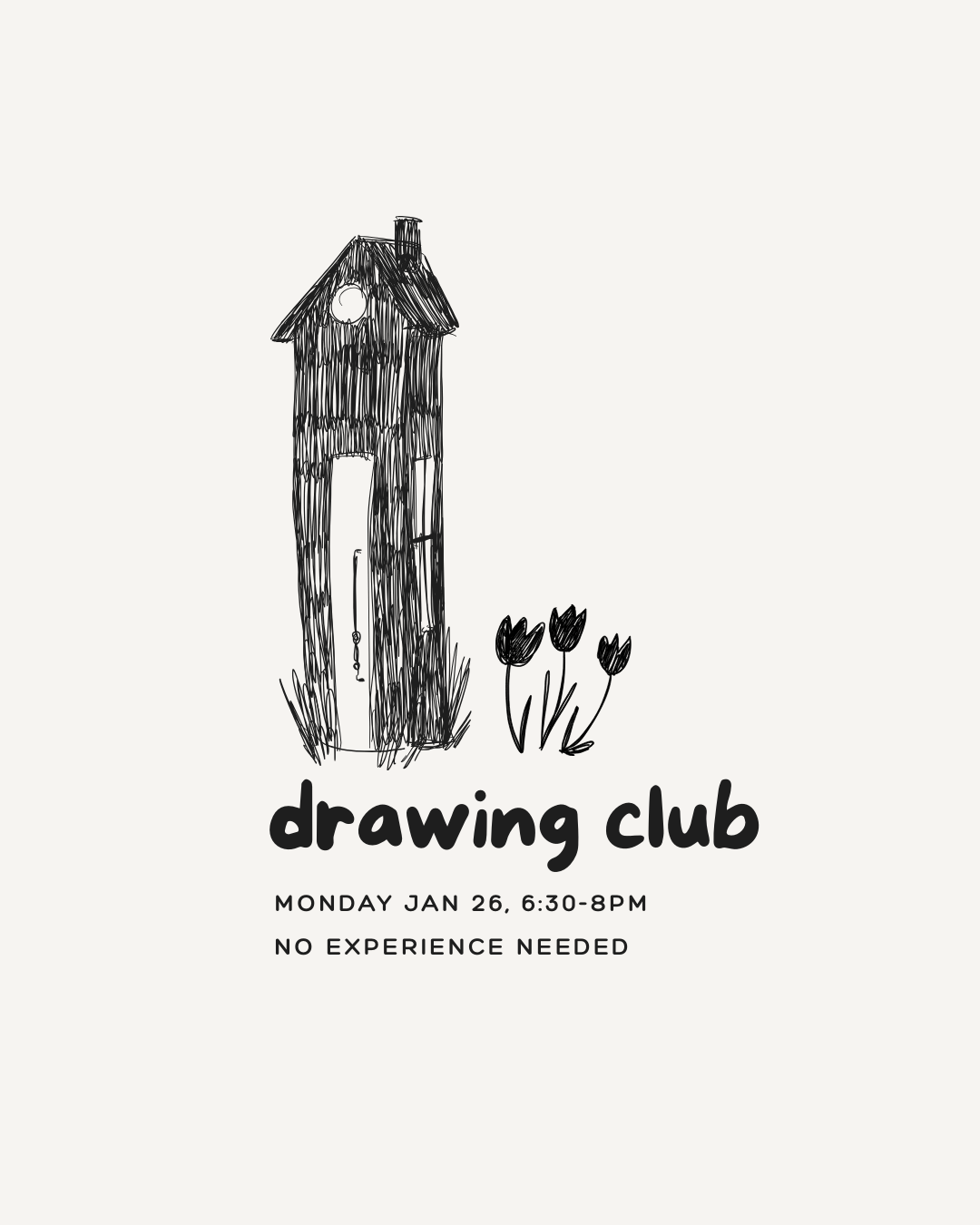 Megan will provide a different optional focus each month (flowers, people, still life, a certain material, etc.) with guidance around technique so that all participants can practice drawing. Or: bring your own drawing project to work on in community with other people at the big Quarry workshop table!