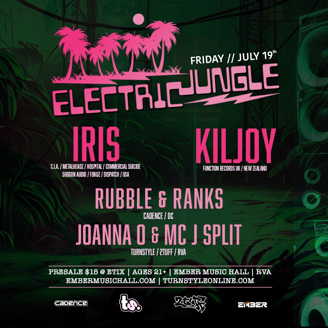 The fourth installment of the popular event series featuring the RVA debut of Seattle’s DJ IRIS, AND New Zealand’s – KILJOY! Double headliner DJ action with a few established area faves setting the tone. Join us in the Electric Jungle for another full night of drum & bass music in the heart of downtown RVA at Ember Music Hall. Last one of the summer!