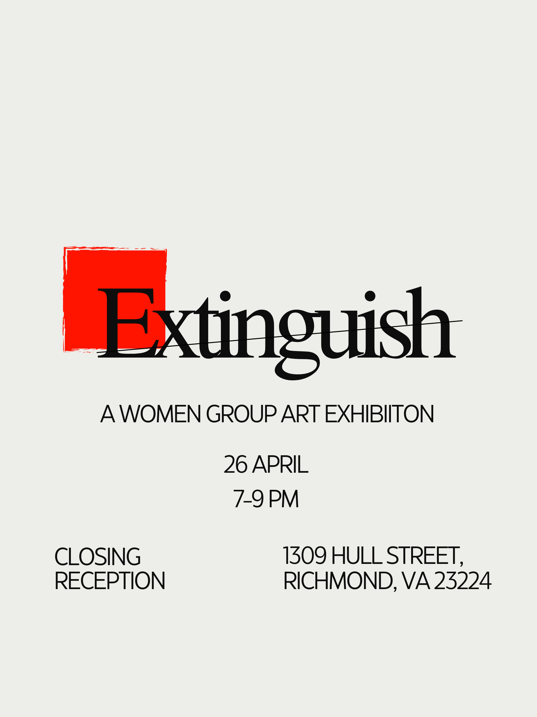 We invite you to join us in celebration of the life of “Extinguish” and honoring the artists and their intersectional work. Free and open to the public! Exhibition will remain on view for one more week through May 3rd!