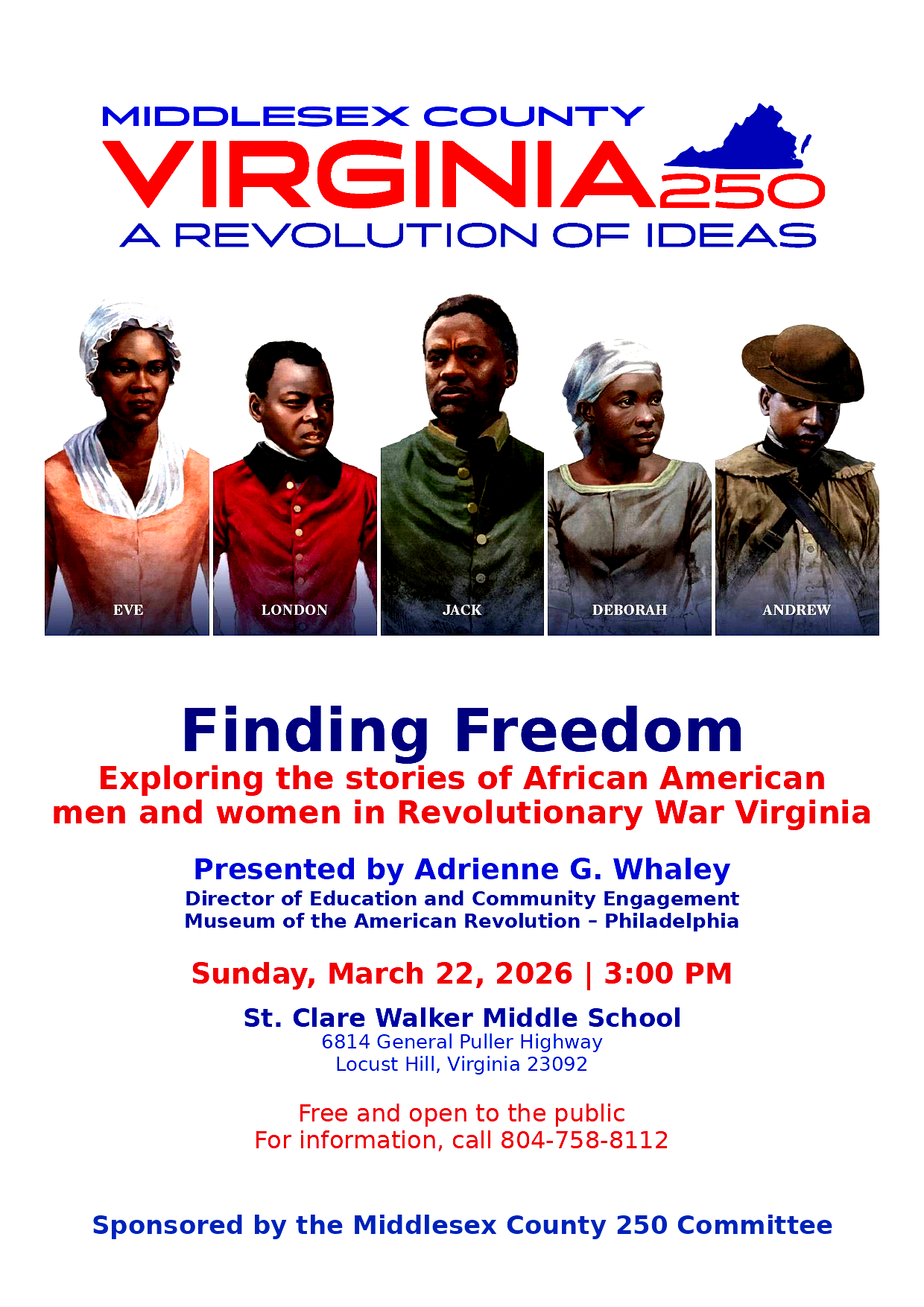 On the eve of the American Revolution, people of African descent made up almost one fifth of British North America’s population. Almost half of them lived in Virginia. They loved, worked, worshipped, and strove to build lives and protect their families and communities despite the hardships they faced. Join Adrienne Whaley, Director of Education and Community Engagement at the Museum of the American Revolution, to learn about some of these Virginians’ dynamic stories in an age of Revolution, from those who sought their freedom with the British to those who felt the hope for a brighter future lay with the Revolutionary cause. Hear their names, discovery their bravery, and consider their difficult decisions in Revolutionary Virginia and beyond as we think about what it means to be American on the 250th anniversary of our nation’s daring founding.