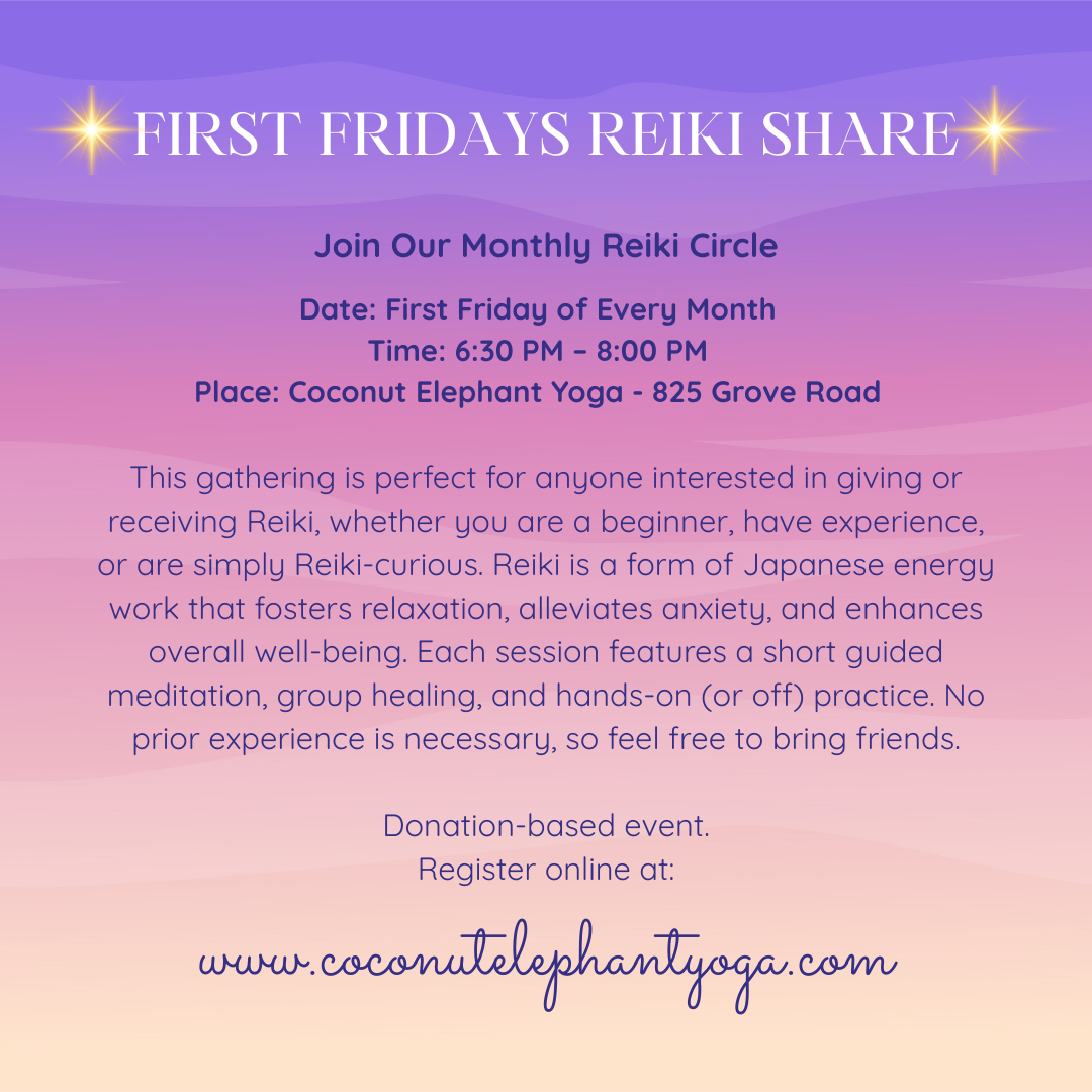 This gathering is perfect for anyone interested in giving or receiving Reiki, whether you are a beginner, have experience, or are simply Reiki-curious. Reiki is a form of Japanese energy work that fosters relaxation, alleviates anxiety, and enhances overall well-being. Each session features a short, guided meditation, group healing, and hands-on (or off) practice.