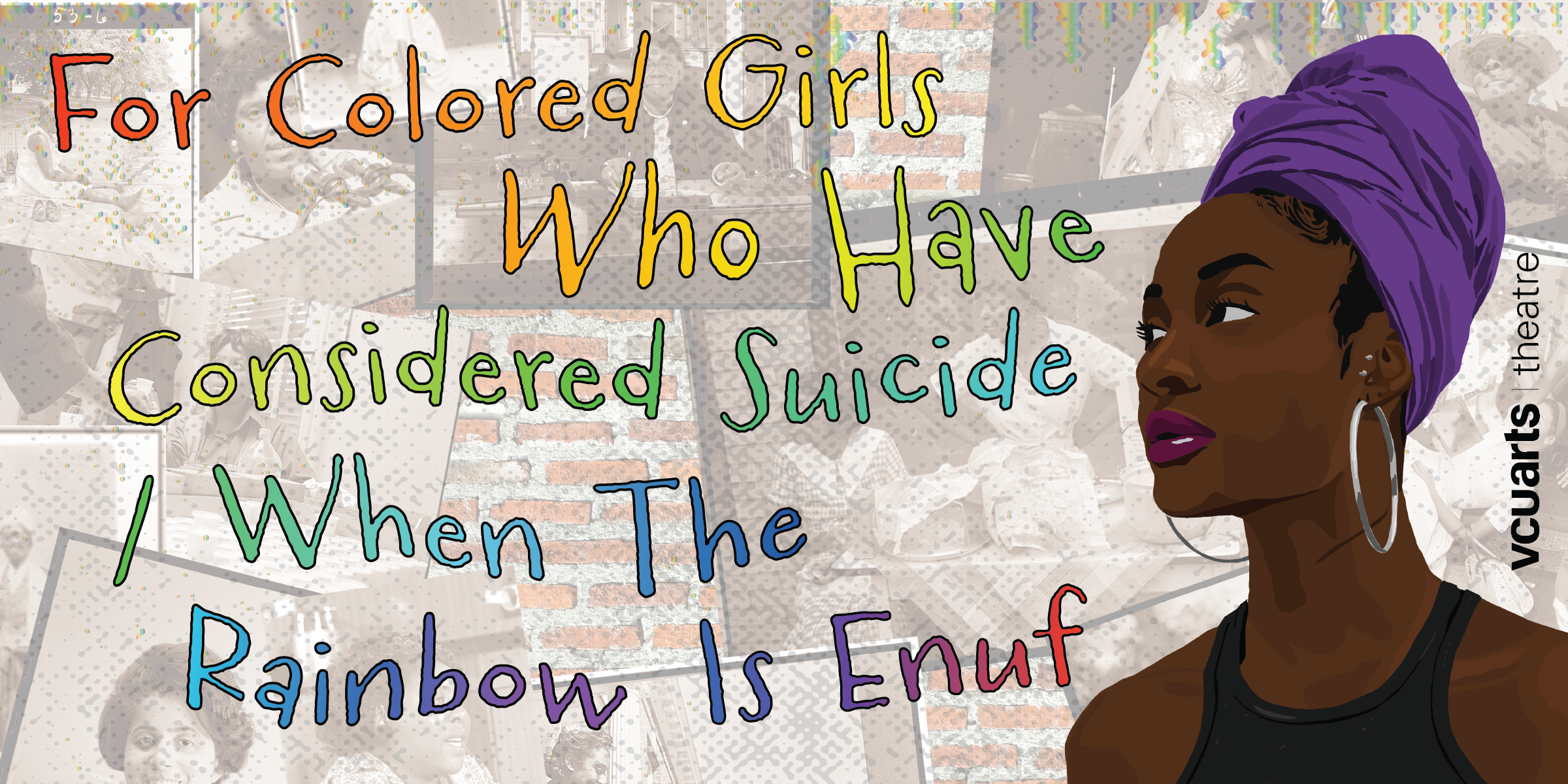Opening the 2024/25 season, VCUarts Theatre is proud to present Ntozake Shange’s Tony Award winning choroepoem “For Colored Girls Who Have Considered Suicide/ when the rainbow is enuf.” This historic and groundbreaking piece explores the triumphs and the challenges of growing up as a little Black girl in America. It is about self discovery and self affirmation, embracing the difficult and inspirational journey from childhood to personhood and womanhood. Through the use of story, poetry, music and dance, the work portrays an undeniably raw and authentic narrative of survival and femininity. VCUarts Theatre first produced “For Colored Girls…” in 2008 and is very excited to once again bring this classic piece of art and history to a new generation of artists, students, and audiences.