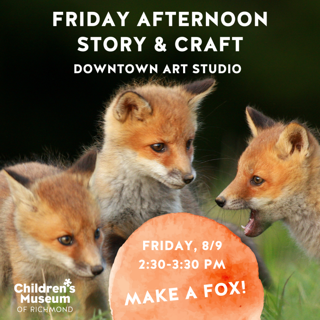 Join us for storytime in the Downtown Art Studio followed by a related art activity on Friday! We will set young imaginations soaring with books about FOXES, then making our own Fox Face with a paper plate and other materials.