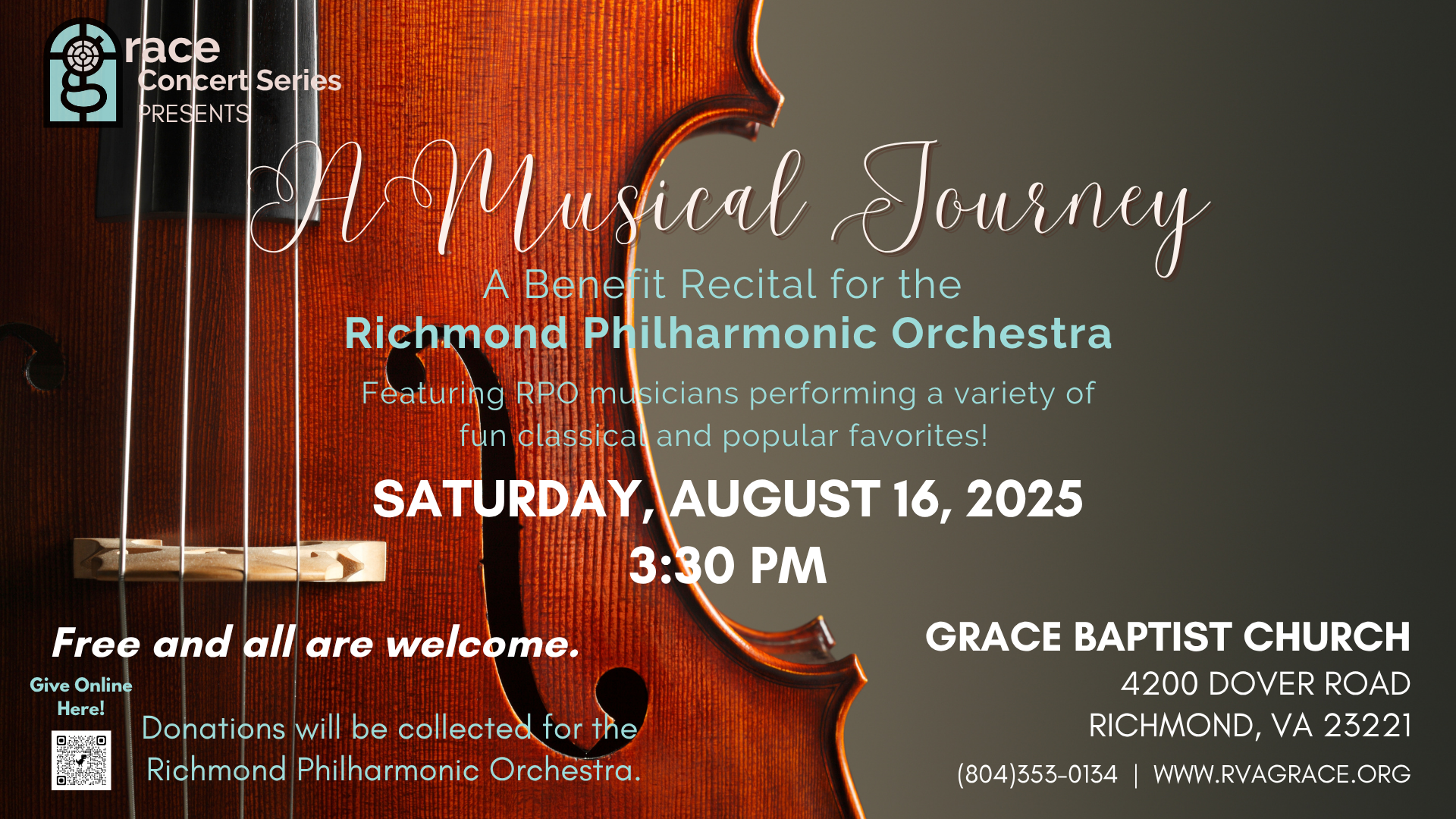 Selected RPO musicians will be performing a program of classical and popular favorites including pieces by Bach, Mozart, Brahms, as well as an “Underground Tango” and the theme from “Game of Thrones”! This is a free event, and all offerings collected will support the RPO, central Virginia’s premier community orchestra. A member-run organization, its musicians are music educators, doctors, accountants, professional musicians, teachers, lawyers, and more. Musicians volunteer their talents to rehearse and perform for diverse audiences. Come out and support music & the arts in our community!