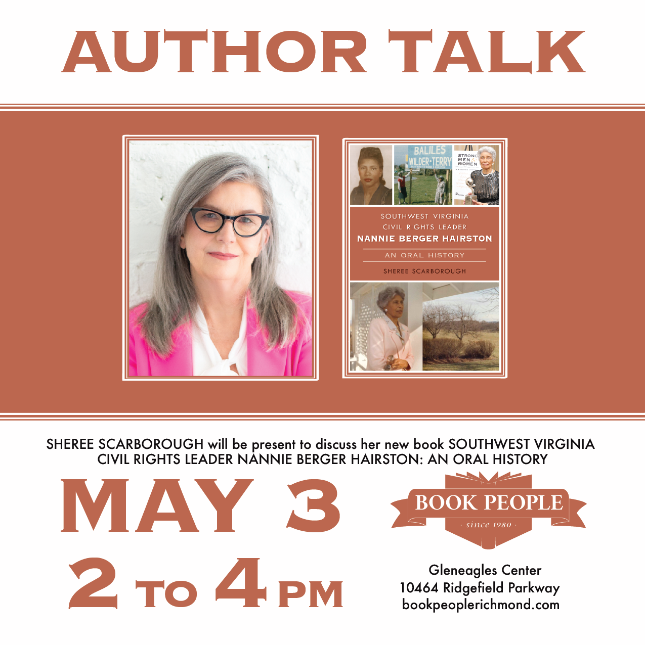 History of a Virginia Civil Rights Leader with Sheree Scarborough at Book People on Saturday, May 3rd at 2:00 PM.