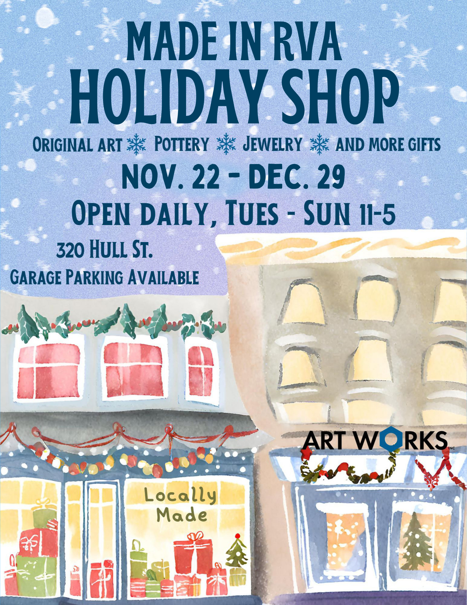 You will love finding the perfect gift for your holiday shopping in the Made in RVA Holiday Shop. Everything is handmade and carefully crafted by local artisans. Choose from fragrant candles to soothing soaps, yummy Bloody Mary mixes to prints of Richmond, jewelry, pottery, totes, and cards.