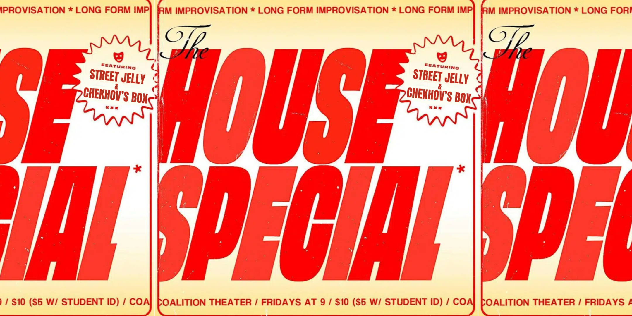 Long form improv from Coalition house teams Street Jelly and Chekhov’s Box!