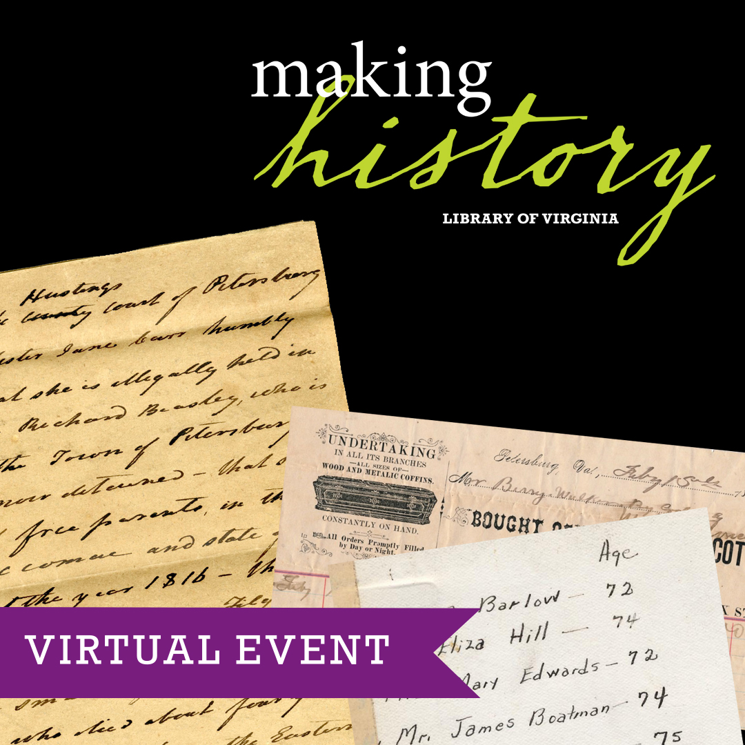Volunteer with us! The Library of Virginia acquires, preserves, and promotes access to unique collections of Virginia’s history and culture. With more content and research moving online, we seek to make digital documents as accessible as possible by crowdsourcing their contents. Volunteers will transcribe handwritten pages and historical newspapers by reading the text and typing it into digital form. Join us for a virtual volunteer session to learn how you can help make historical documents more searchable and usable for researchers now and in the future.