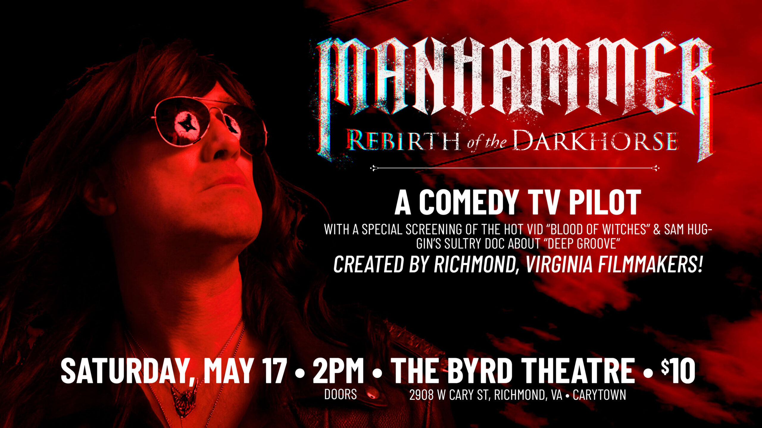 MANHAMMER: Rebirth of the Darkhorse, a chaotic and unapologetic indie comedy about a washed-up rockstar chasing fame and making all the wrong choices, will have its premiere at The Byrd Theatre on Saturday, May 17th at 2:00 PM.