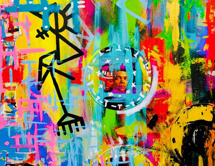 SPONTANEOUS COMBUSTION – Khalid Thompson’s art is the spontaneous application of color and mixed media designed to emphasize free expression with relationships to music, nature, and cultural connection.