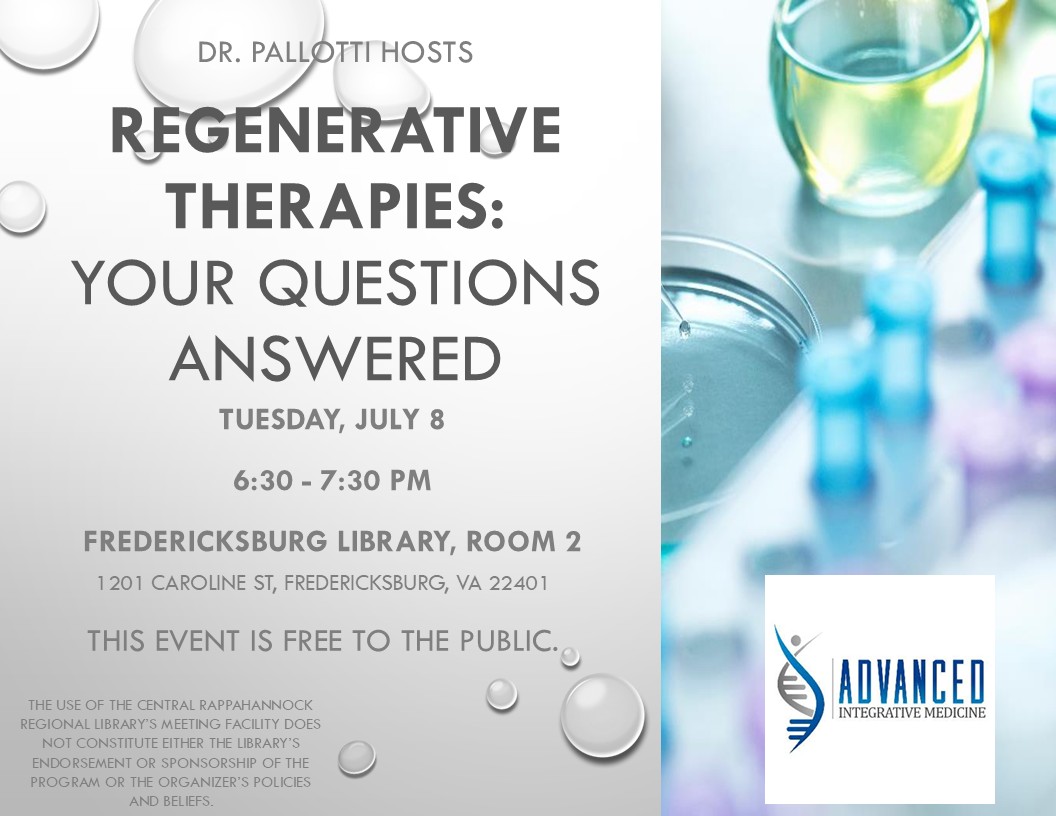 Come and learn about the latest in regenerative therapies from Dr. Pallotti!