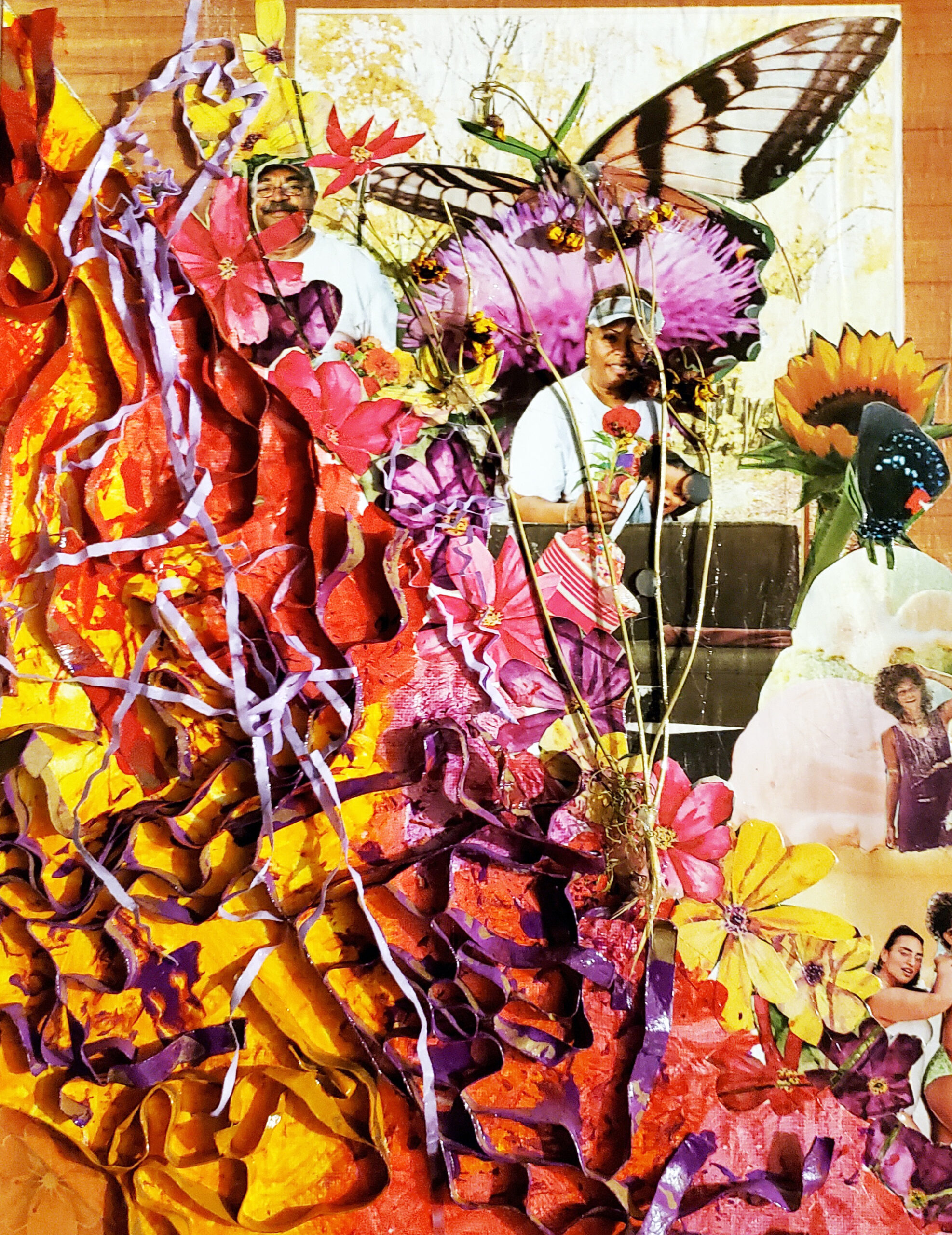 Image: “Amongst the Flowers” by Dorothy Rice and Helene Ruiz, 11” x 14” Collage.