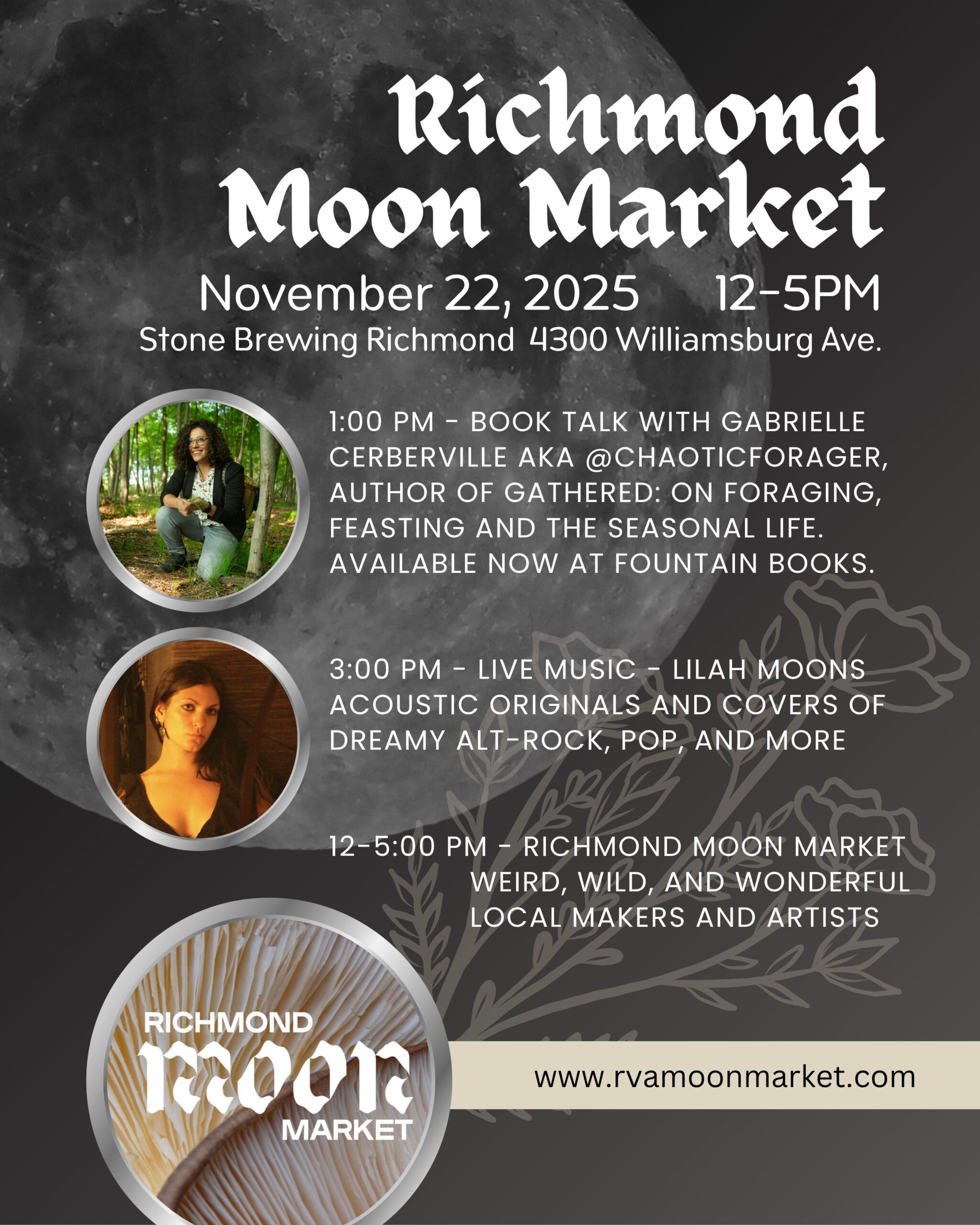 Gabrielle Cerberville AKA Chaotic Forager will join us for a very special Richmond Moon Market.