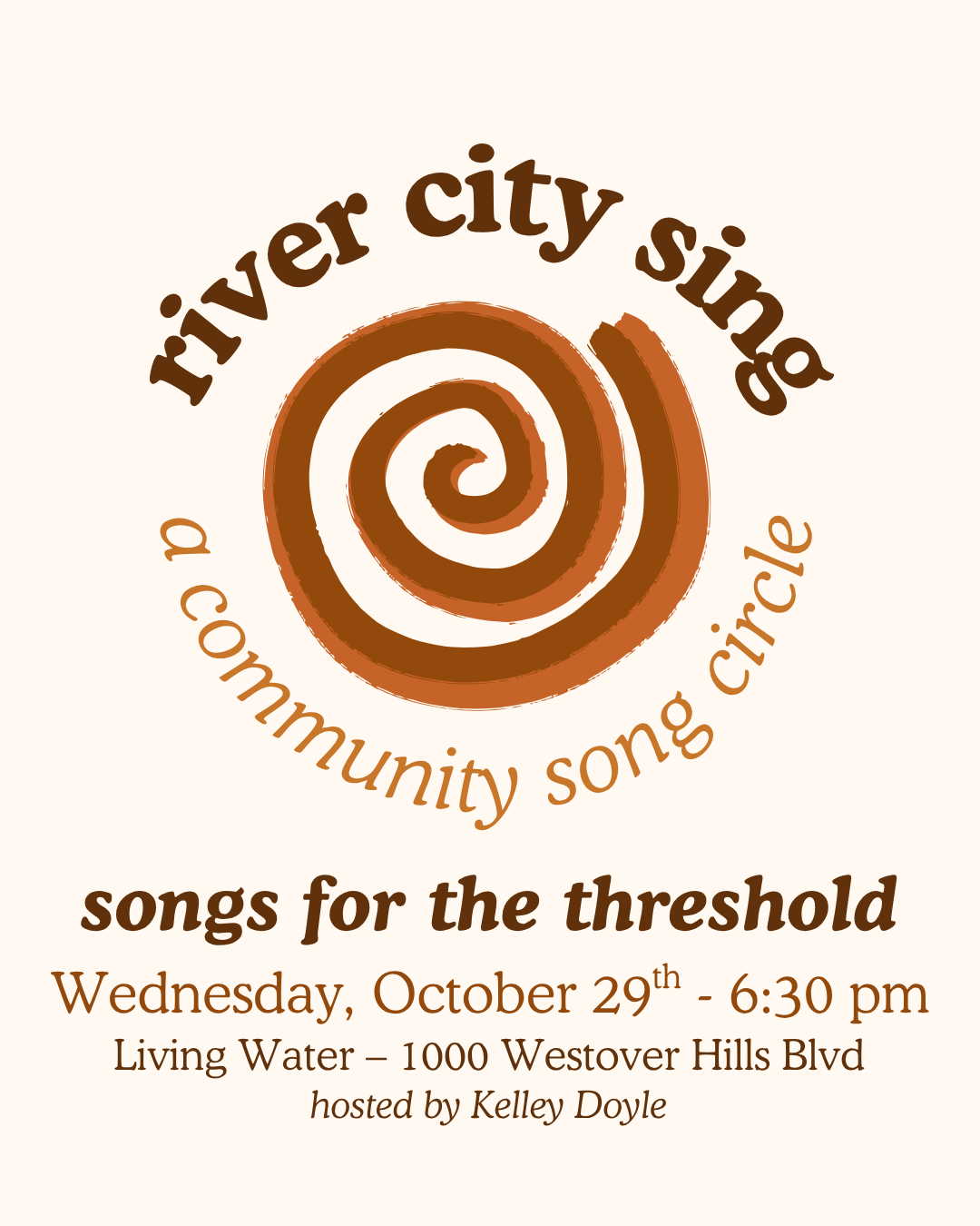 River City Sing is a new monthly song circle* meeting at Living Water Community Center! Our theme this month is “Songs for the Threshold:”