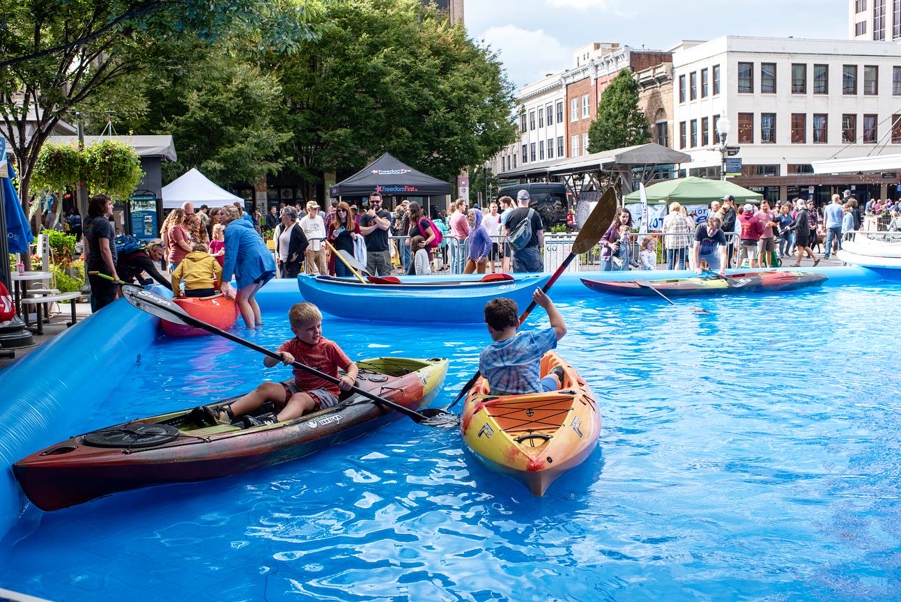 Family Fun: Try fly fishing lessons, explore a giant inflatable kayak pool, tackle obstacle courses, and enjoy interactive art with Lamb Arts.