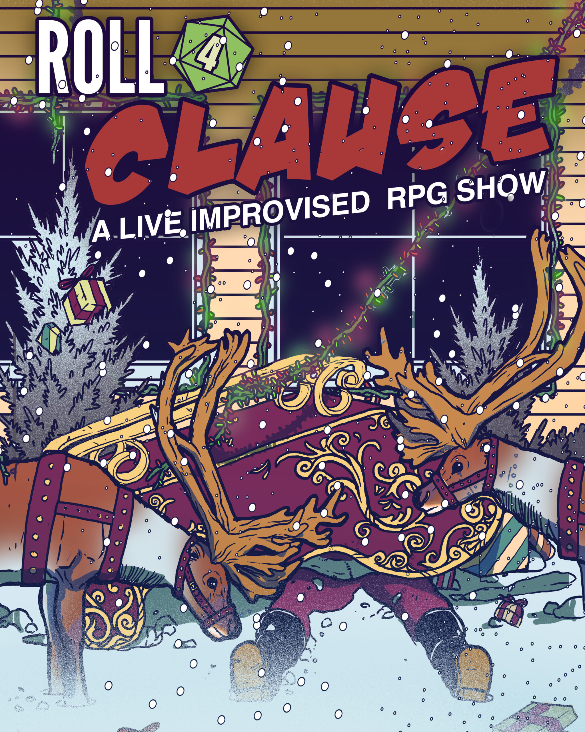 Santa is out of commission on Christmas Eve, and it’s up to the most unlikely of heroes to save the day! In this live, improvised role playing comedy show, the mechanics of Dungeons & Dragons meet the world of The Santa Clause. The fates of our players and the holiday season itself will be determined by rolls of the dice and audience suggestions in the seasonal chaos of Roll 4 Clause!