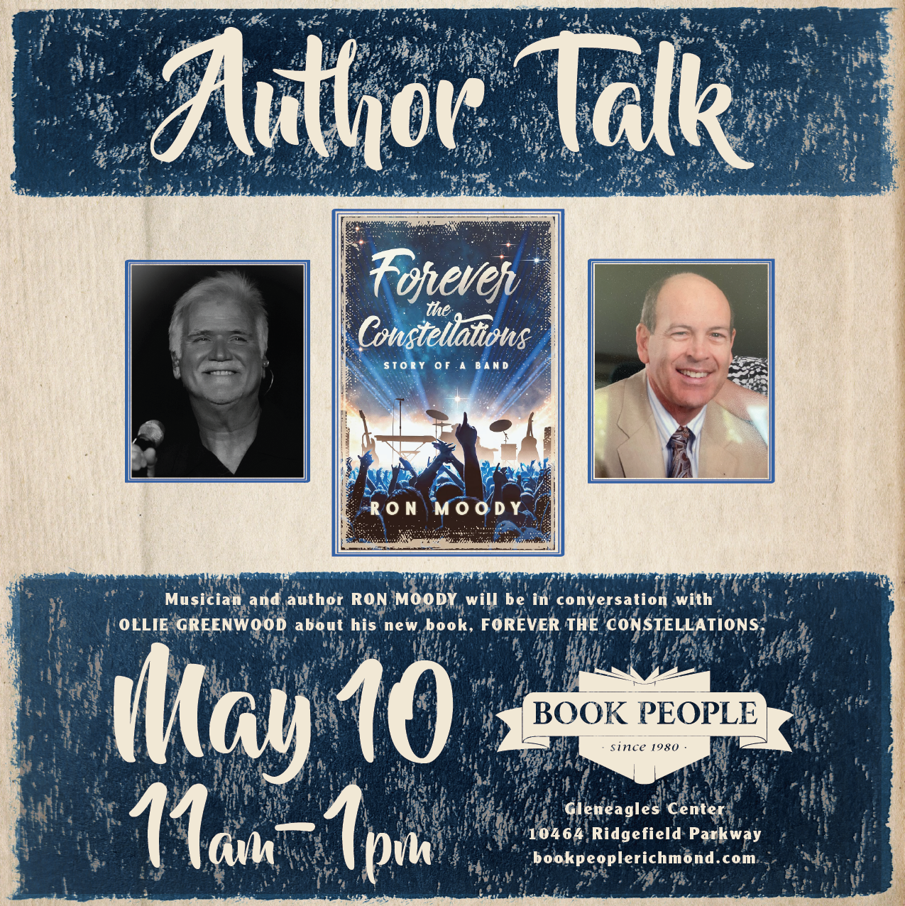 On Saturday, May 10th at 11:00 am Book People welcomes Ron Moody founding member of the band Ron Moody and the Centaurs and host of the syndicated radio shows YOUR Saturday Night Beach Party and Retro Rock and Soul – The Music & The Memories. In addition to all his musical endeavors, Ron has authored his first novel Forever the Constellations.