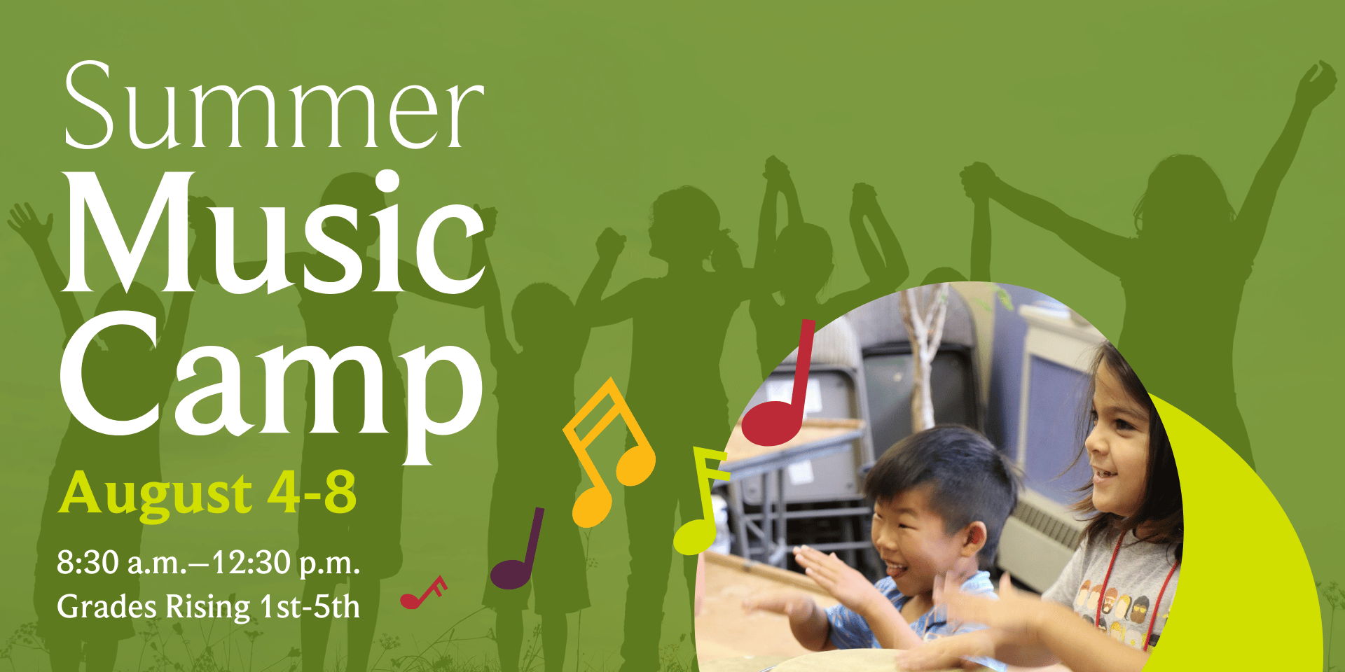 Kids entering 1st–5th grade are invited to a week full of creativity, rhythm, and fun! Campers will explore a variety of musical and artistic experiences, including: