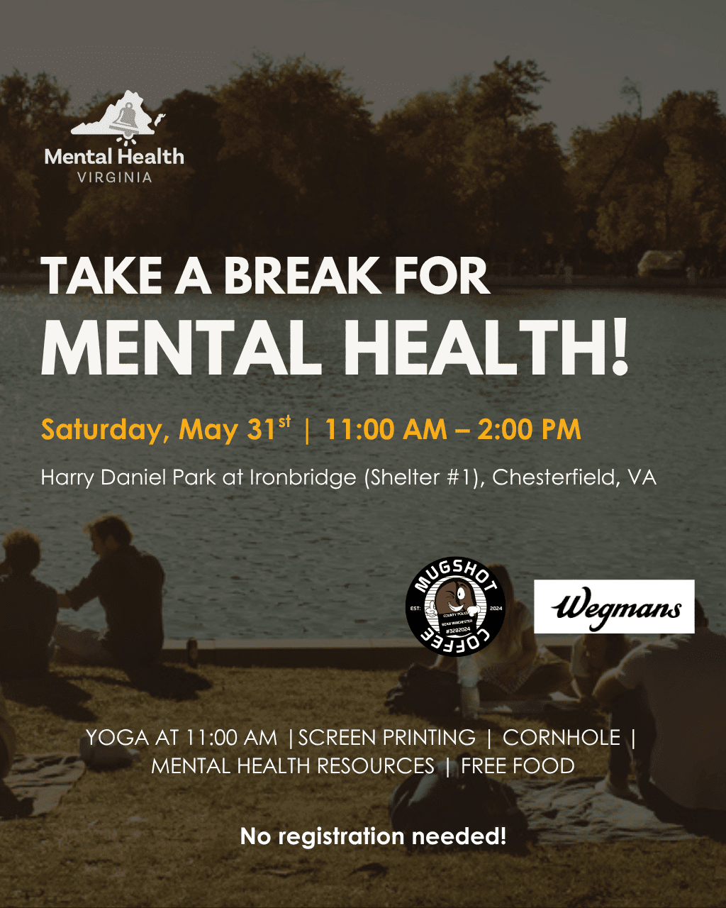 May is Mental Health Month! Play, being outdoors, and socializing are important parts of maintaining mental wellness, so join Mental Health Virginia for a FREE event in the park featuring screenprinting your own bag, food, and other activities.