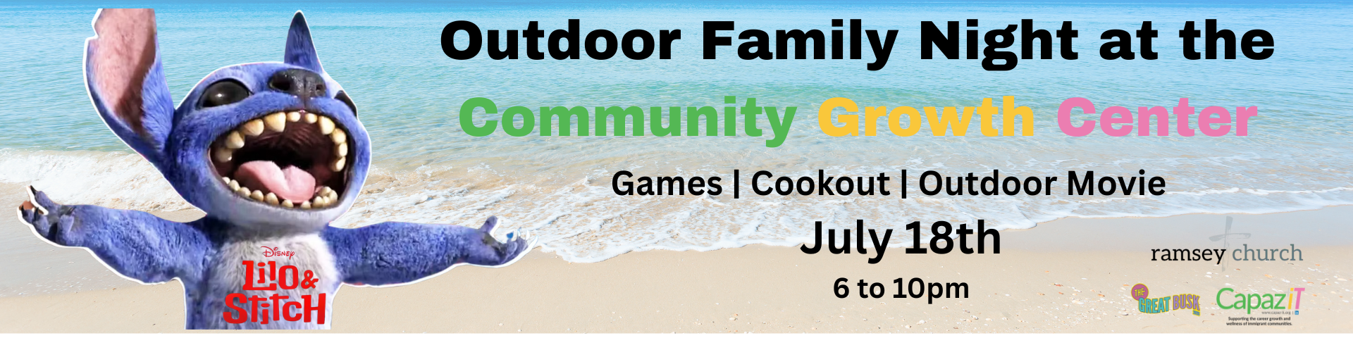 Join us for an evening of food, fun, and family as we gather under the stars to watch the original Lilo & Stitch and cookout! We’ll be serving hot dogs, hamburgers, chips, and sodas — and showing a beloved film that inspired today’s popular remakes. Bring your blankets, chairs, and appetite for community!