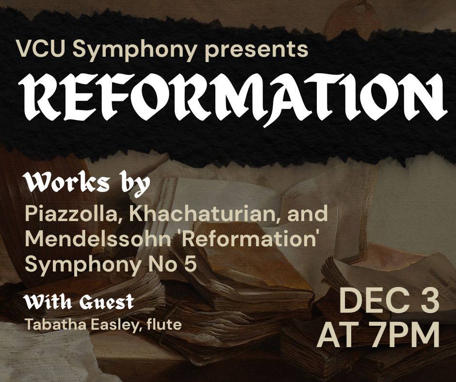 Composed of undergraduate music and non-music major students, the VCU Symphony, directed by Daniel Myssyk, is eager to present to you its second program of the season.