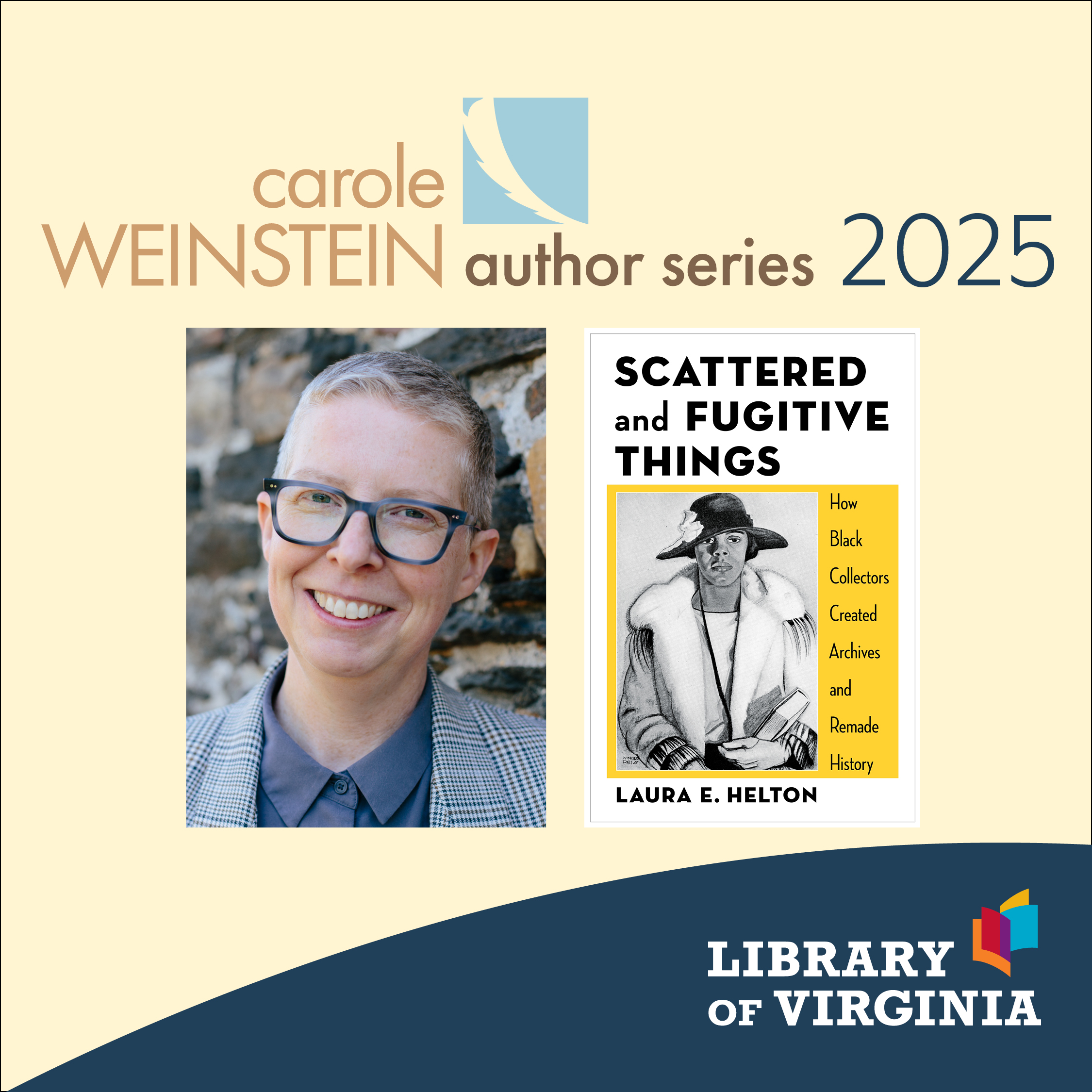 The Carole Weinstein Author Series supports the literary arts by bringing both new and well-known authors to the Library of Virginia through online or in-person events. Free and open to the public, the series focuses on Virginia authors and Virginia subjects across all genres.